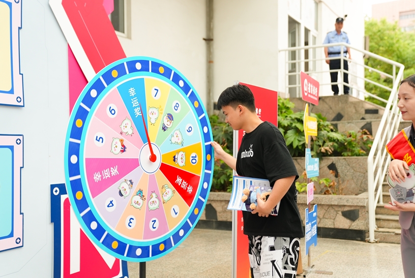 活动现场,开展了反诈市集大挑战活动,吸引了众多学生踊跃参与。通过金融知识答题招行幸运大转盘、反诈“大骰子”、反诈防非“投壶英雄”、金融投教踢球射门、金融知识粘球飞镖盘等互动形式,普及金融服务知识,帮助学生掌握防范金融诈骗技巧,自觉远离非法借贷活动,保护财产安全,增强大学生自我保护意识和能力。