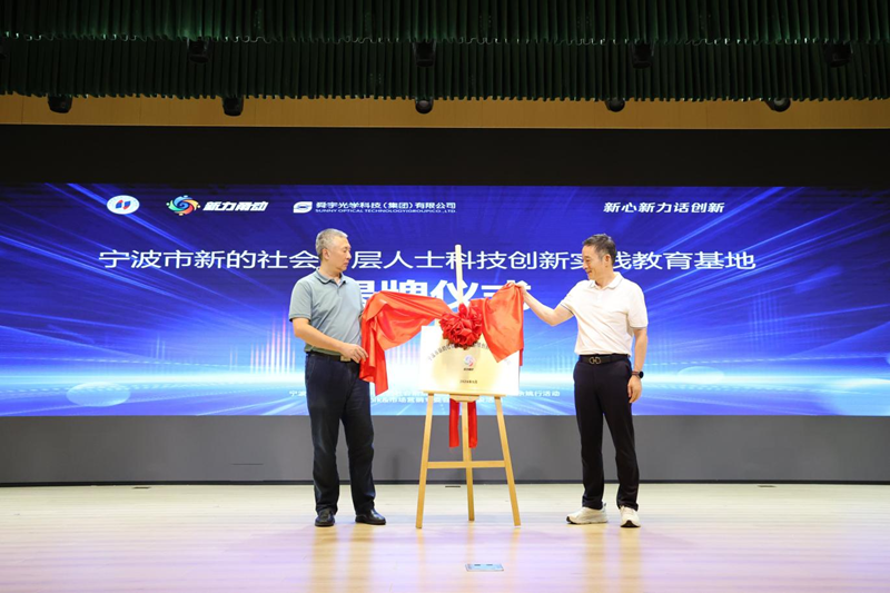 活动现场举行了“宁波市新的社会阶层人士科技创新实践教育基地”揭牌仪式。据悉,为加强市县两级新联会组织间的交流互动,宁波市新联会在舜宇集团设立了“宁波市新的社会阶层人士科技创新实践教育基地”,旨在进一步推动党外人才共育、资源平台共享、作用发挥共融,合力打造好这一新的社会阶层人士助力科技创新的工作阵地。