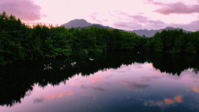 晚霞让楠溪江更显柔美与梦幻。