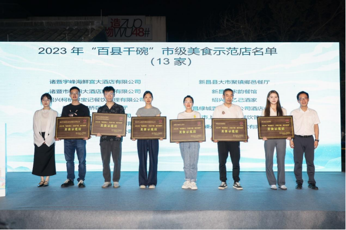 现场,绍兴市咸亨酒店相关负责人作“百县千碗”推广工作典型发言。绍兴市文化广电旅游局和行业协会相关负责人为“百县千碗”市级美食场所授牌。