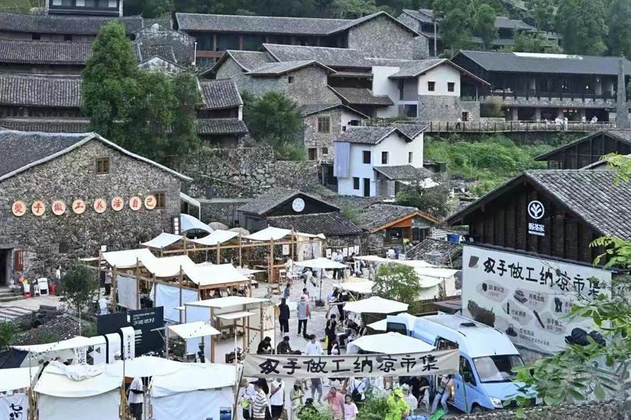 水碓坑村举办“双手做工”纳凉市集。瓯海区文广旅体局供图