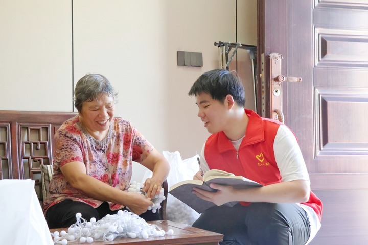 浙江临海市东塍镇党员志愿者将共富工坊订单送到村民家中。(张琼洁 摄)