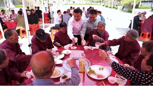 当天上午,浦江县郑宅镇东明书院里,郑宅镇80岁以上的老人欢聚一堂,品尝着美食,脸上洋溢着幸福的笑容。80岁的金美华老人说:“今天是生平第一次在家门口参加重阳节家宴,很热闹、很开心。”退休干部邵成砚对乡厨们的精湛厨艺竖起了大拇指,他说:“厨师准备的传统菜肴,是平常日子吃不到的,这些菜肴不仅味道好,还藏着浓浓的乡情,希望这样的活动能够经常开展。”
