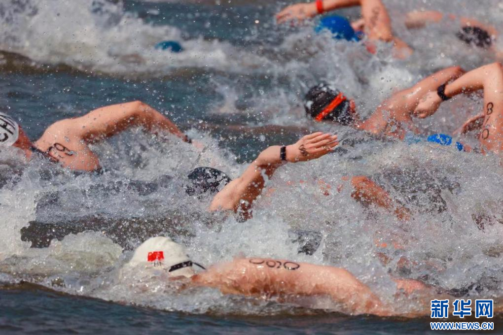 10月12日,选手在女子10公里比赛中入水。新华社记者 江汉 摄
