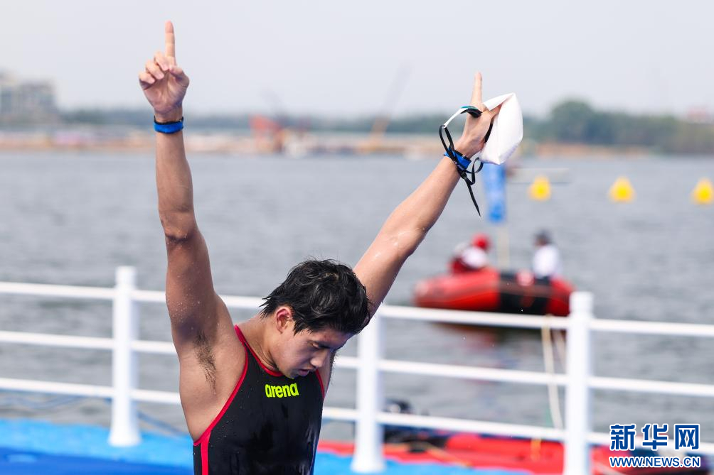 这是柳雅欣第一次参加公开水域游泳比赛,在信安湖中畅游对她而言也是一次与日常迥异的比赛体验。“公开水域的水温比较低、环境也与我日常训练的泳池不太一样。所以最后的冲刺阶段我都不敢回头看,一鼓作气冲线,还挺累的。”赛后柳雅欣笑着说。