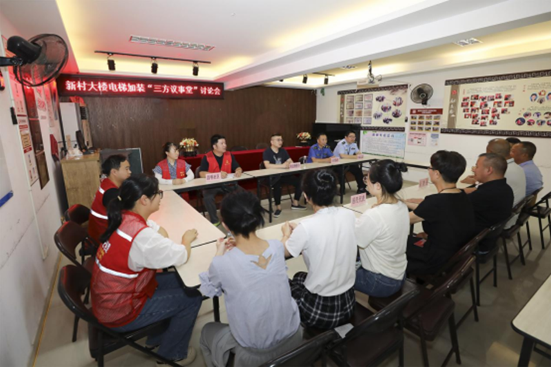 据悉,新村大楼有着近30年的楼龄,住户中老龄人口达45%以上,“加装电梯”成为了居民日益强烈的期盼。为解决居民的“急难愁盼”,松台街道以“三方议事堂”为依托,联动社区、业委会、物业服务企业,探索以三方协同方式破除电梯加装壁垒。