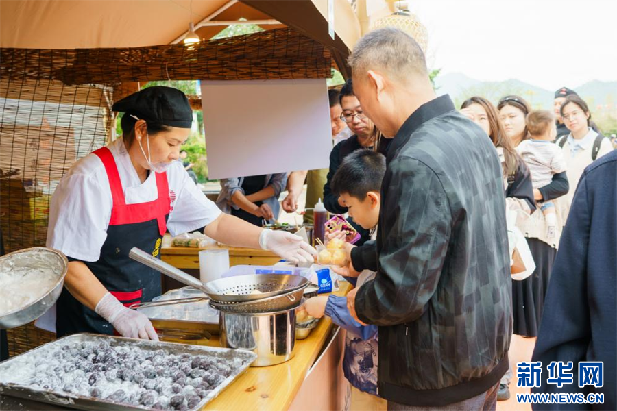 兴善门外广场的美食摊位。新华网发 冯瑶琪摄(10月2日)