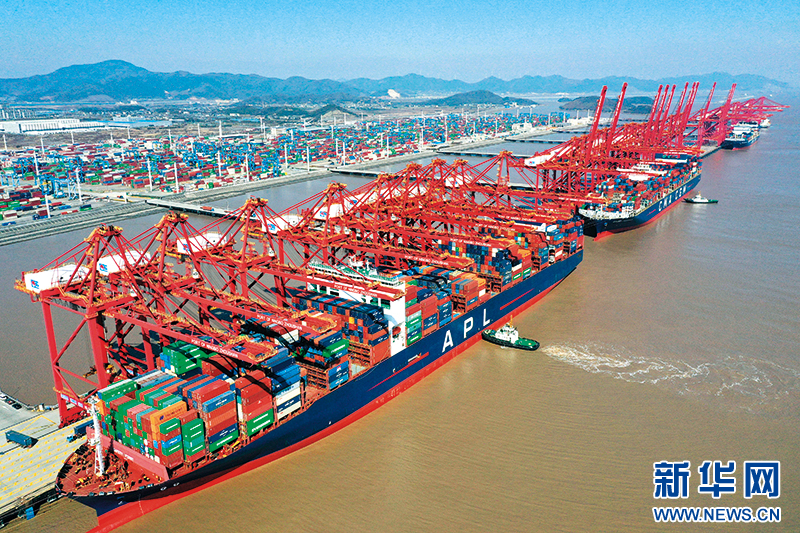 货轮停靠在浙江宁波舟山港梅山港区码头(2024年1月24日摄) 黄宗治摄/本刊