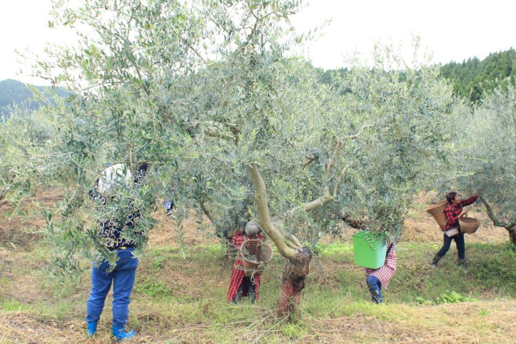 工人在成群采摘橄榄。