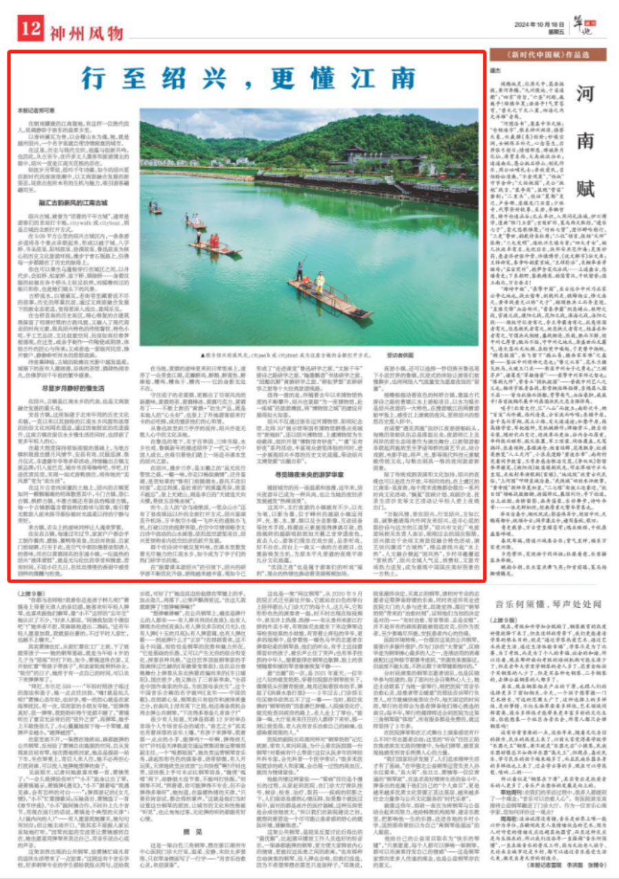 “万般风情,皆在绍兴。行至绍兴,方知江南。诚挚邀请海内外网友来绍兴,追寻心底的那份诗与远方的江南梦。”绍兴市文化广电旅游局相关负责人表示,刚刚过去的国庆假期,绍兴推出千余场文商旅促融合特色活动,演艺快闪激活“古城热”,精品游线兴起“水上热”,人文融合掀起“国风热”,乡村寻趣邂逅“赏秋热”,绍兴全域人气足,消费旺,文旅市场热力迸发,成为展现中国国庆美好图景的一方热土。