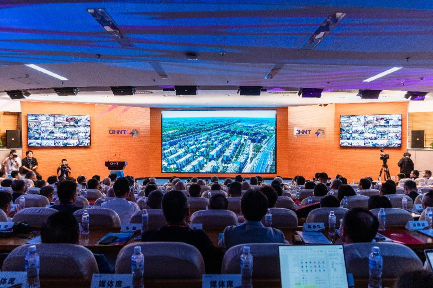 发布仪式上,秦朔与正泰集团董事长南存辉,集团党委书记吴炳池,集团董事、副总裁陈建克共同按下发布键。
