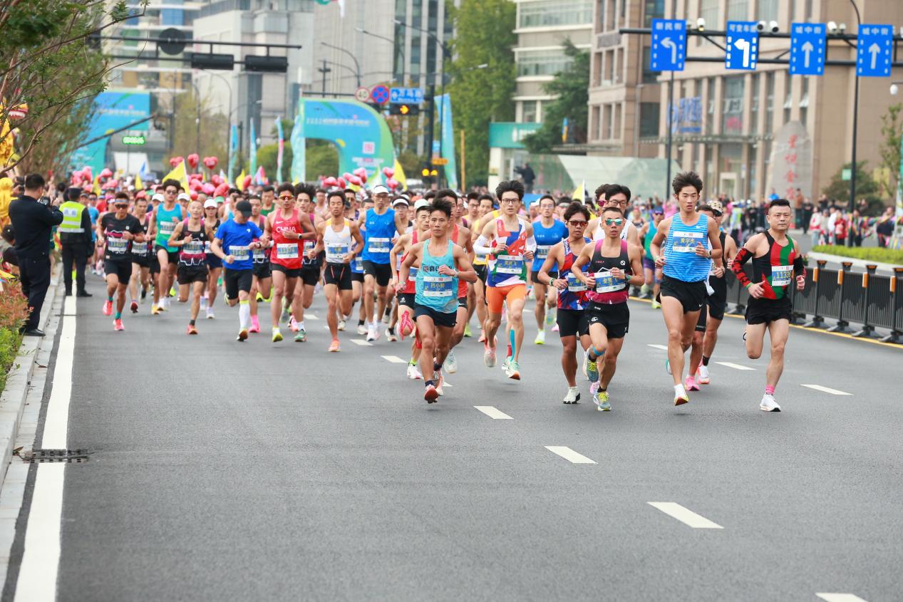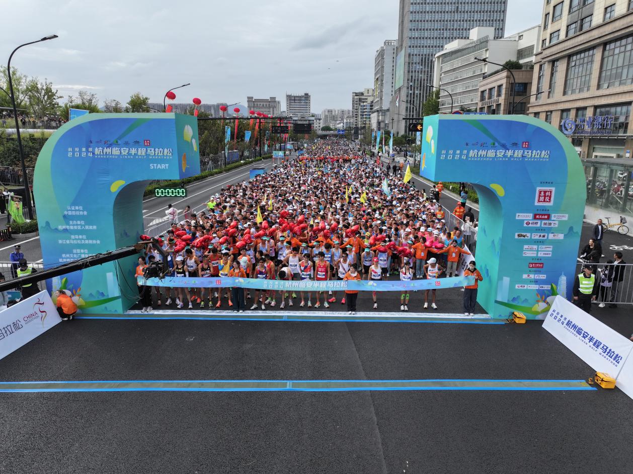 10月20日,科投集团·2024杭州临安半程马拉松开跑。来自五湖四海的跑友分为半程马拉松、健康跑、家庭跑三个组别依次冲出起点。