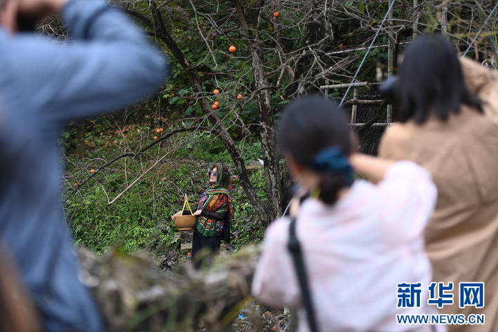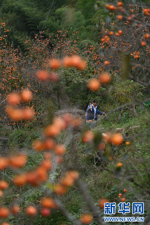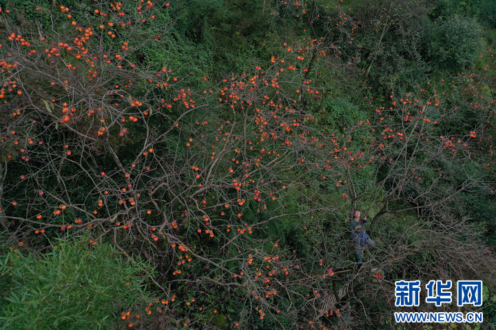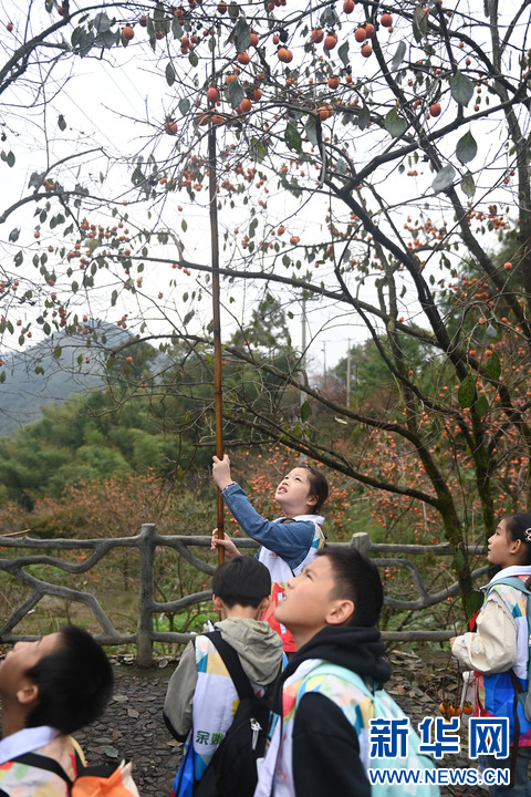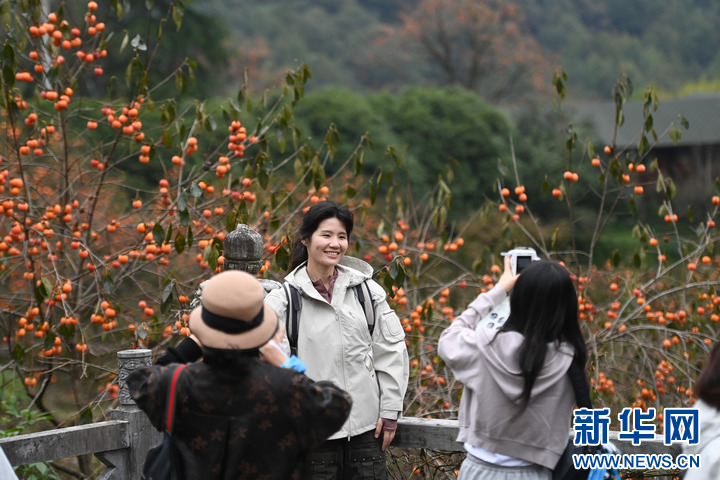 晚秋时节,浙江省余姚市大岚镇柿林村的红柿悬挂在枝头,呈现出一派独特的山村丰收美景,吸引大批游客前来游览、体验采摘。 柿林村是地处浙东四明山腹地的传统古村落,年产“吊红”柿子20万余斤。