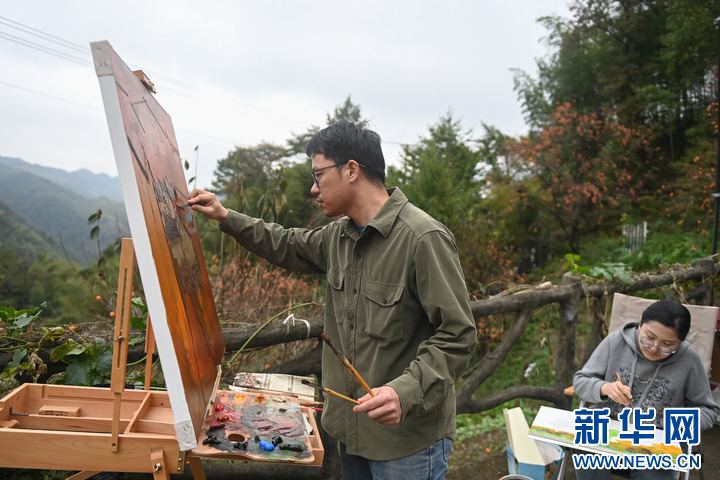 10月20日,余姚市美术家协会画家在大岚镇柿林村参加“共绘柿林”现场写生活动,完成的画作将赠与柿林村。