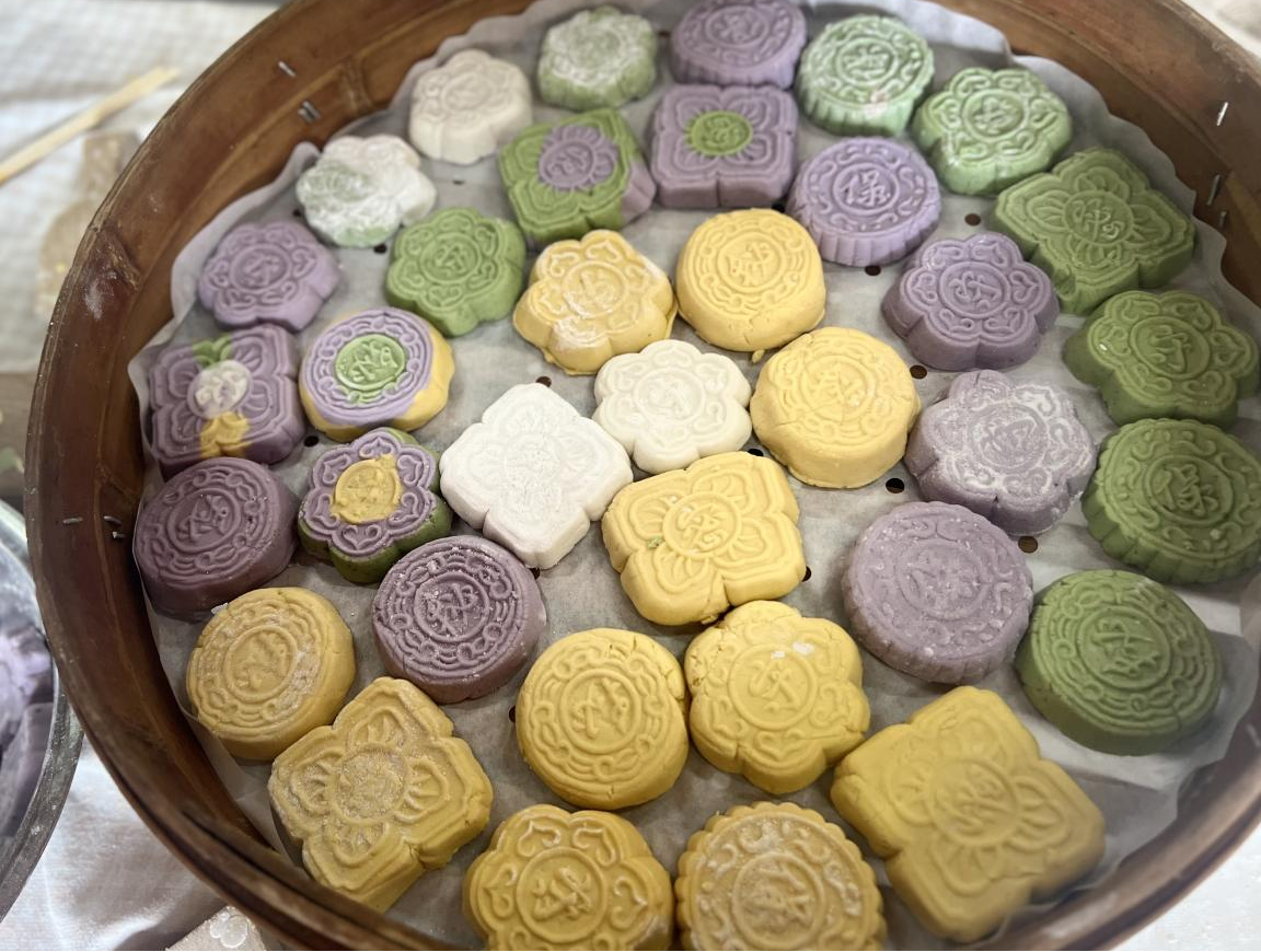 “在做糖糕时一定要把模具填满压实,脱模的时候用力一敲就能做好了。”在“糖糕奶奶”吴阿姨的指导下,学生们做出了方的、圆的、花朵型的各类型的糖糕,并将其按照“保”“守”“秘”“密”四个字的顺序整齐地排列在一起。