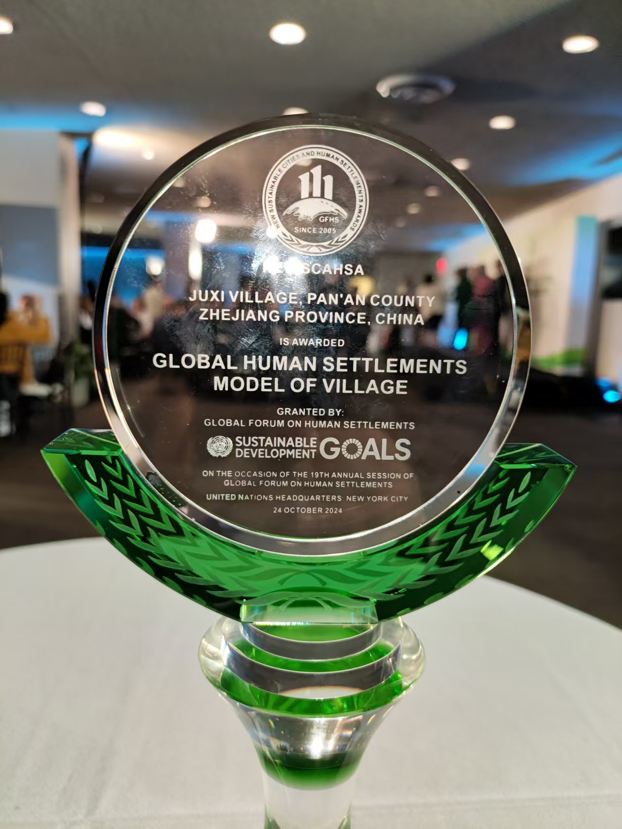 10月24日至25日,2024全球人居环境论坛年会暨新可持续城市与人居环境奖颁奖典礼举行。浙江省金华市磐安县盘峰乡榉溪村申报的“全球人居环境村落范例”获“新可持续城市与人居环境奖”。