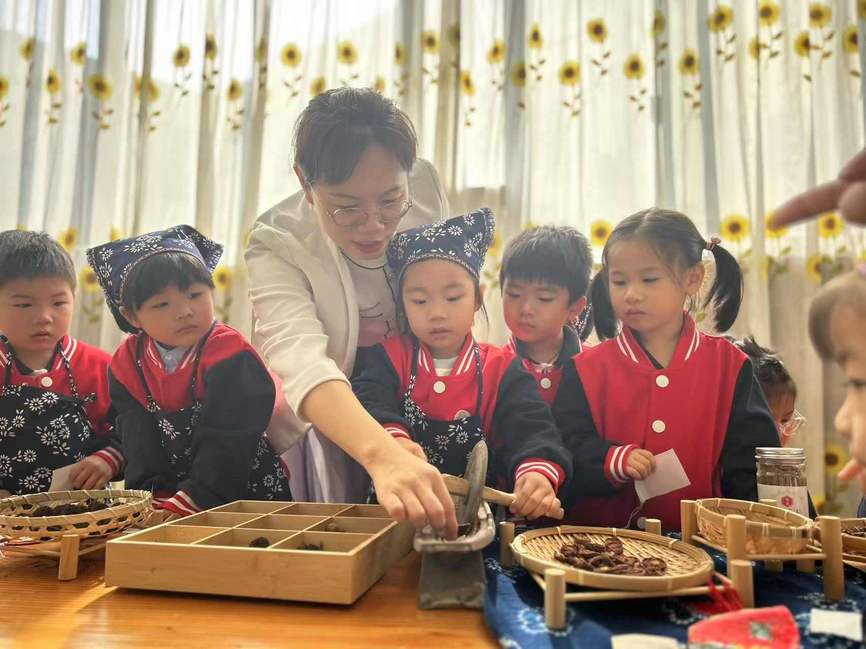 活动中,浙江工业大学药学院副教授张慧带领大学生志愿者走进浙江工业大学附属秋山幼儿园开展中医药知识科普课堂,现场给孩子们发放陈皮、佩兰、艾叶、白芷等常见中药材,带领孩子们亲身体验中草药的形色味,了解常见中药材的来源以及功效和作用。