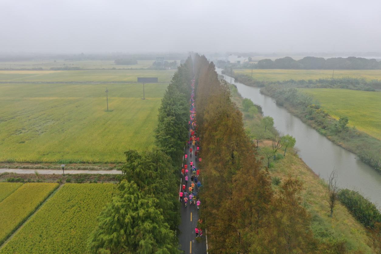 10月26日,在浙江省嘉兴市秀洲区新塍镇万亩金黄稻田旁,伴着风吹稻浪沙沙作响的旋律,2024第二届“新塍大米”杯迷你马拉松欢乐跑正式开跑。