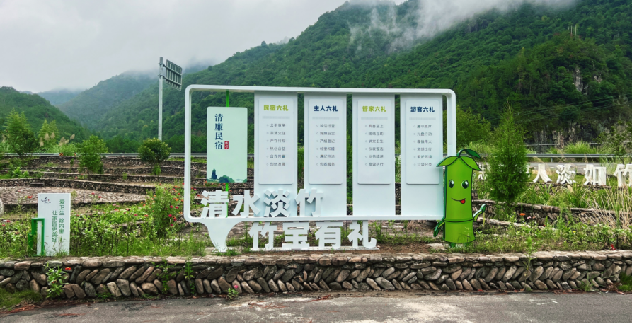 为帮助村民拓销农产品,仙居县委统战部联合淡竹乡创新打造“竹宝”IP作为清廉民宿形象大使,并设立“竹宝直播间”,一方面各民宿业主可在直播间采购日常物品,另一方面引导好样民宿管家、最美民宿女主人等示范代表参与直播带货。截至目前,“竹宝直播间”农产品销售额达1200余万元,同时吸纳就业人员380名。打造“好人好样 幸福里”志愿服务品牌,引导民宿提供免费饮水、免费充电、爱心雨伞等优质服务,组建100余名民宿志愿者队伍参与平安夜巡、防溺水宣传、交通疏导等志愿服务。面向辖区内200余家民宿,组织开展“清廉民宿”评选,并将诚信经营纳入到民宿星级评定体系,在同等条件下,获评清廉民宿的给予优先推荐。