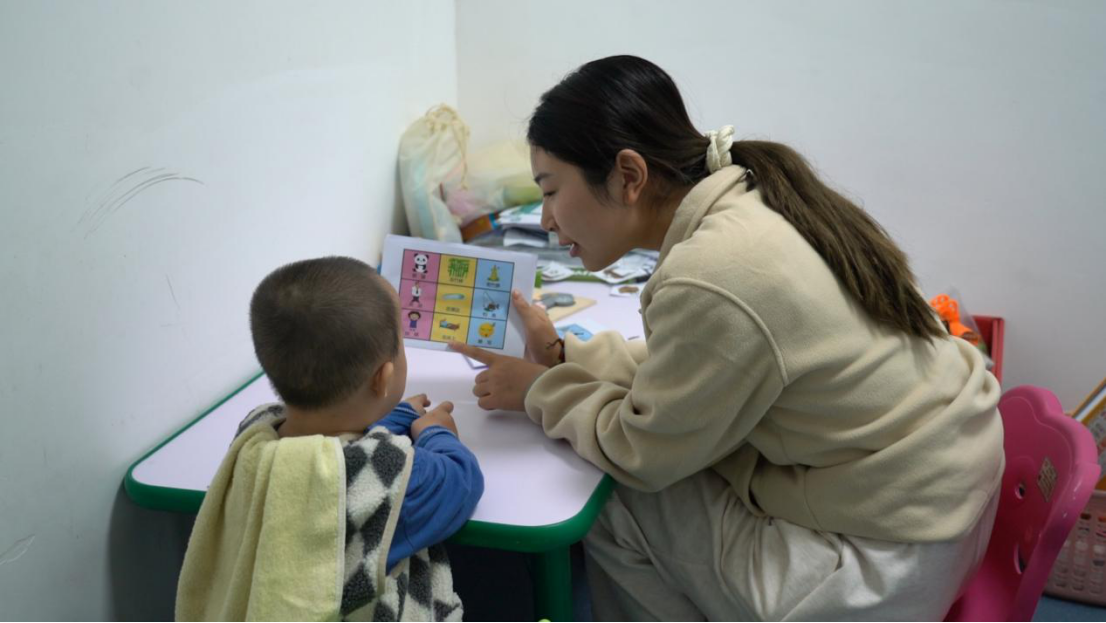 “这是什么?”“熊猫!”“真棒!它在哪里?”……近日,在四川省巴中市平昌县残疾儿童康复托养中心的个别化训练室里,康复老师正拿着一张训练卡片引导一位2岁的患儿进行对话训练。