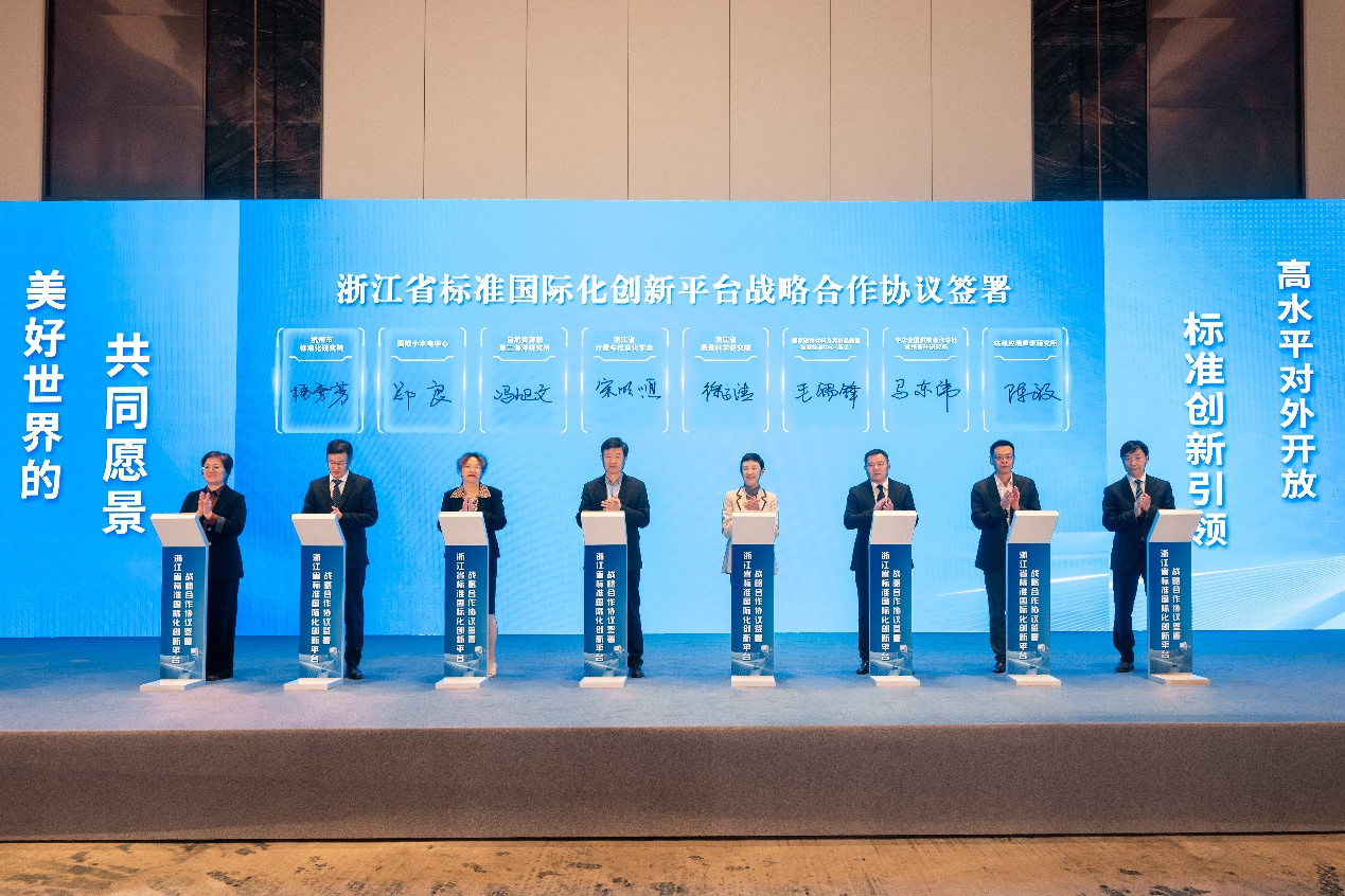 活动现场,在浙江省市场监督管理局的指导下,浙江省质量科学研究院(ISO/PC 348国内技术对口单位)联合杭州市标准化研究院(ISO/TC 321秘书处)等在浙的8家国际标准化技术委员会/分技术委员会秘书处承担单位、国内技术对口单位和相关社会团体,共同发起成立浙江省标准国际化创新平台,签署《浙江省标准国际化创新平台战略合作协议》。该平台旨在通过创新整合各单位在国际标准化平台、资源及人才方面的优势,协同推进标准国际化进程,加快实现浙江省标准国际化整体效能倍增。