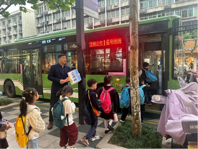 很快,相关单位携手制定了护学专线计划。桐庐县实验小学目前有1400余名学生,根据不同年龄段上学时间及学生居住小区的情况调查,桐庐县交发集团下属潇洒公交公司投入11辆车,开通19条线路,覆盖了城南片区主要居民区,380余名学生受益。