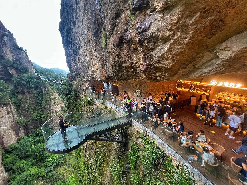 一杯咖啡,一路风景,再定格一张美图,逐渐成为许多游客沉浸式体验雁荡山旅游消费的新潮流。浓郁的咖啡香与亿万年地质奇观交织在一起,为游客带来了别具滋味的旅游体验。与景色深度融合的咖啡馆,正成为雁荡山新的打卡点。
