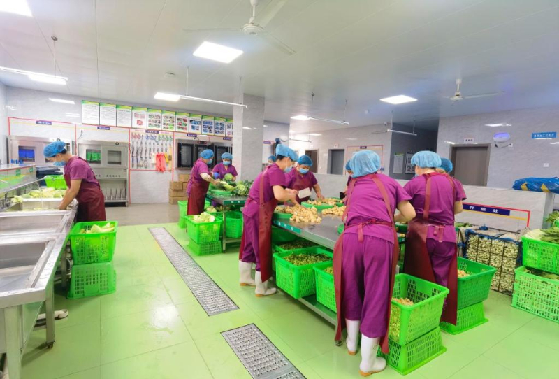 走进食堂大厅,入眼可见“示范食堂”的美好模样。大厅墙上,贴着“食品安全管理动线卡位图”“食品安全管理组织架构图”“人员责任区域图”“周、月卫生清洁计划”等各类台账,制度清晰,管理规范。厨房操作间内,烹饪区生熟区分明朗,设备设施有名有家;备餐间管控严谨、工器具保洁、清毒到位,留样操作规范;洗消间设备设置合理,检识清晰,操作动线顺畅等。