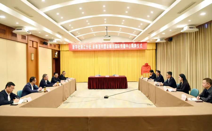11月12日上午,新华社浙江分社与浙江宁波余姚市合作框架协议签约暨余姚市国际传播中心揭牌仪式举行。新华社浙江分社社长邬焕庆、余姚市委书记傅贵荣出席仪式并致辞。新华社浙江分社副社长张乐出席仪式,余姚市委常委、宣传部部长潘帅轶主持仪式。