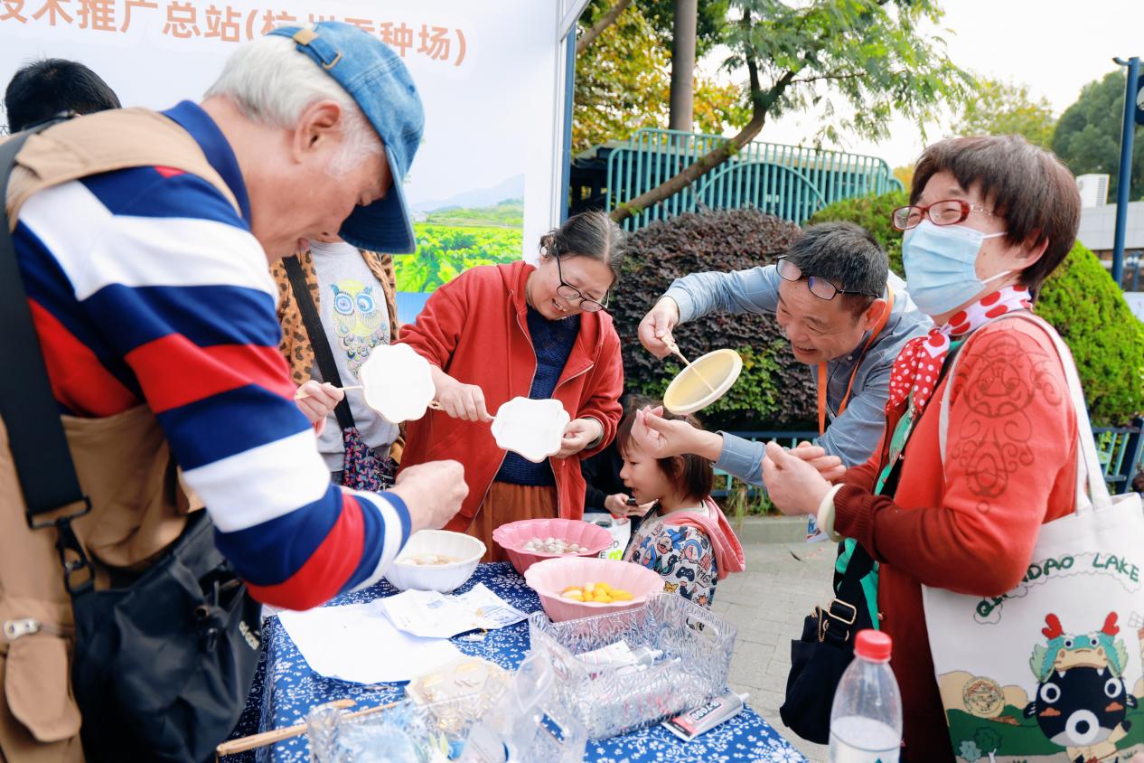 同时,在非遗文化区,清水丝绵非遗传人沈美丽现场展示剥翻、漂洗、扯绵一手绝活,江南茧画漂染、固化、彩绘等艺术技巧非常吸睛。此外,在互动体验区,观察饲料养蚕VS桑叶养蚕,体验蚕丝团扇制作,还能带走蚕宝宝礼盒亲手养育,全程守护从卵到丝的奇妙旅程。(赵婧芝/文 杭州市农业农村局/供图)