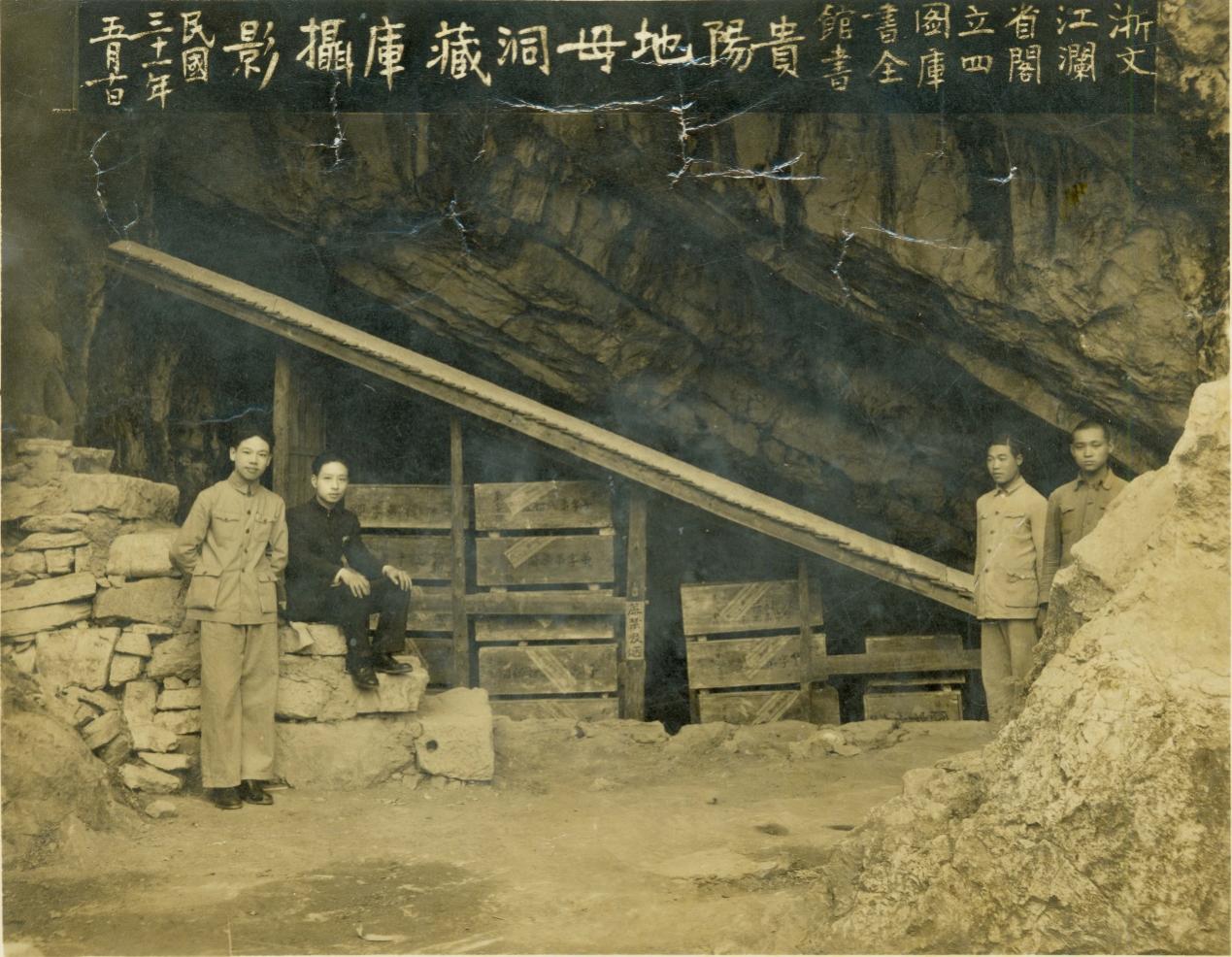 浙江籍保管员毛春翔等人在贵阳地母洞前合影。