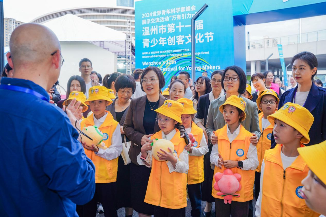 女科学家们还带着30位少年儿童,“大手牵小手”共同参与温州市第十一届青少年创客文化节,一起探寻科学的奥秘。该活动特设科创主题研学活动,现场展示的3D打印、声控行走机器人、AI插画等黑科技吸引孩子们驻足观看,沉浸式感受科技魅力。