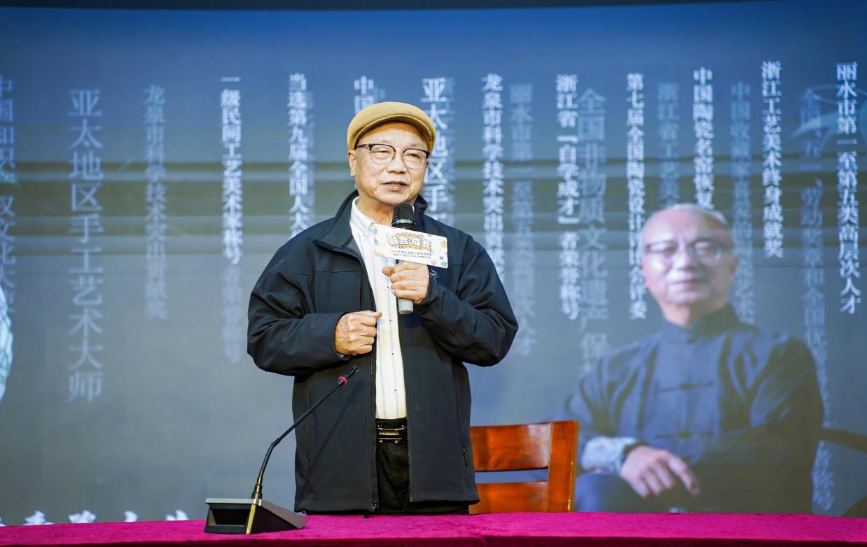 中国工艺美术大师徐朝兴出席活动,并给孩子们讲述了他的青瓷艺术人生故事。徐朝兴用自己的成长经历告诉孩子们,要从小培养精益求精的匠人精神和勇于创造的创新精神,弘扬陶艺这一优秀的中国传统文化。