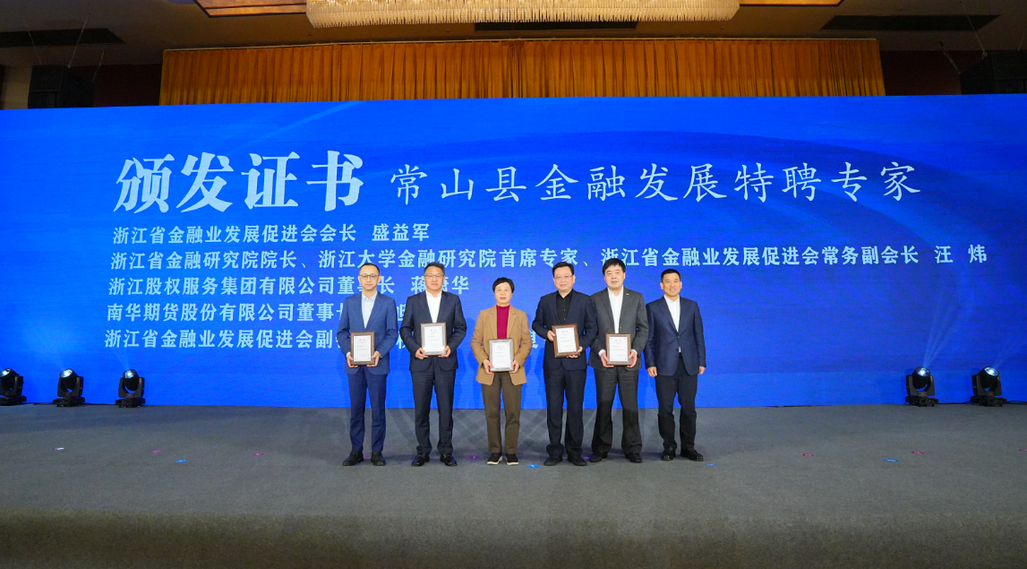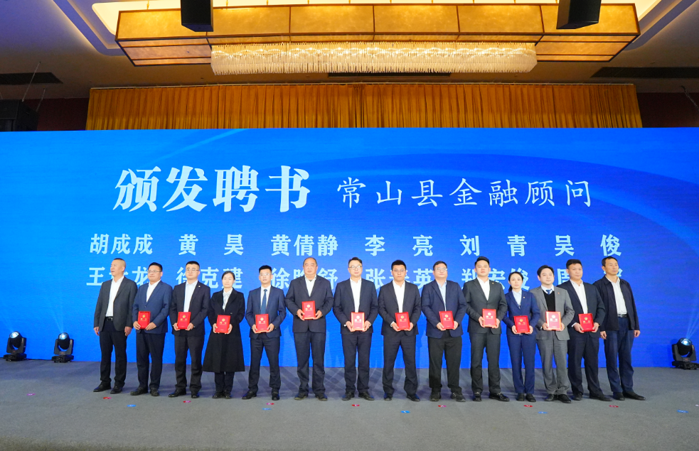 活动现场,常山县综合金融生态建设金融顾问工作室、金融服务县域经济研究基地正式揭牌。宁波银行常山支行行长助理徐瞻舒、常山联合村镇银行副行长张春英等10人受聘成为常山县金融顾问,浙江省金融业发展促进会会长盛益军、浙江大学金融研究院首席专家汪炜等5人受聘成为常山县金融发展特聘专家。
