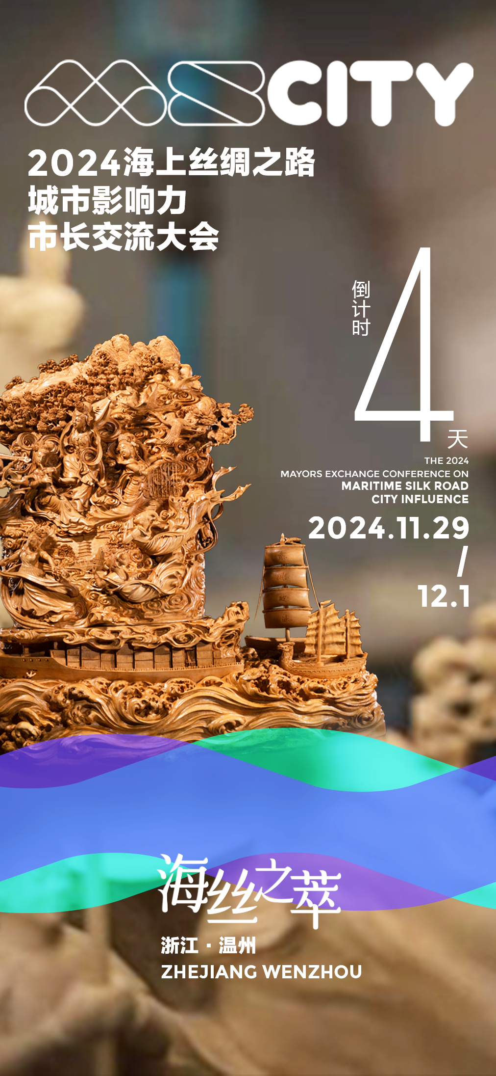 11月29日至12月1日,2024海上丝绸之路城市影响力市长交流大会将在浙江温州召开,其中大会开幕式暨主交流大会将于11月30日上午举办。