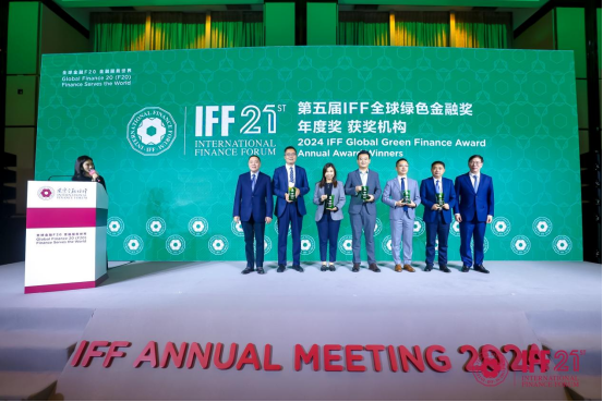 国际金融论坛(IFF)是全球金融领域高级别常设对话机制和多边合作机构,成立于2003年,由G20国家以及联合国、世界银行、国际货币基金组织等相关机构及领导人共同发起,旨在建立全球金融战略对话、交流合作、实践创新及学术研究的权威平台,被誉为全球金融领域的F20(Finance 20)。“IFF全球绿色金融奖”设“年度奖”和“创新奖”,其中,“年度奖”主要对在全球绿色金融领域综合表现突出的机构进行表彰。本次“IFF全球绿色金融奖”的评委会由国内外21位重要财经领袖和金融、环境界精英组成,该奖项具有全球权威性和影响力。