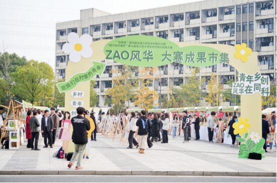“ZAO风华”大赛成果市集当天同步开启,浙江大学、中国科学技术大学等十余所高校纷纷亮相,展出今年参赛学生的乡创硕果。