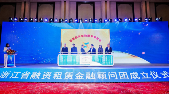 会上,浙江省“融资租赁金融顾问工作室”正式宣布成立,浙江省委金融办常务副主任徐国龙、浙商总会金融服务委员会主席陆建强、浙江金融监管局副局长叶慧霖、中国人民银行浙江省分行信贷政策管理处副处长王婧文、浙商总会金融服务委员会执行主席周伟新与浙江浙银金融租赁股份有限公司董事长汪国平共同为工作室揭牌。