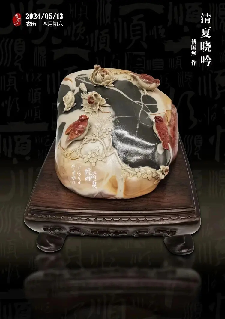 在泰顺的石雕艺术世界里,一件名为《清夏晓吟》的作品以其独特的魅力,吸引了无数人的目光,这是傅国焕大师倾尽心血雕刻的艺术珍品。针对这幅作品,傅国焕大师选择了不规则的立方体形状作为石雕的基础,打破了传统的对称与规整,给人一种自由、灵动的感觉。在雕刻过程中,他巧妙地运用了浮雕和镂空等技法,使得石雕表面呈现出了丰富的纹理和色彩。特别是那只展翅飞翔的鸟儿,栩栩如生,仿佛要从石雕中飞出,让人不禁为之惊叹。