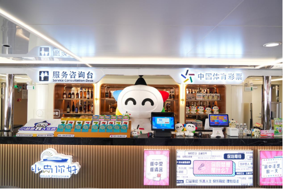 这家编号3309071560的体彩实体店,以好玩为主题、以文旅为媒介、以轮渡为载体,与大众共绘幸运图景,传递无限创意。位置就处在游客的座位正后方,左右两旁是供行走的通道,几乎每一位游客都会与其“打个照面”。“中国体育彩票”“快乐购彩,理性投注” 等标语采用电子牌设计,与大小不一、造型多样的“乐小星”公仔相搭配,整体风格尽显简约清爽,又不失活力和温馨。特别设置的打卡拍照区里,还有印着各种网红元素的道具,免费供喜欢拍照的游客将专属于自己的欢乐瞬间定格于此,分分钟就能出片。