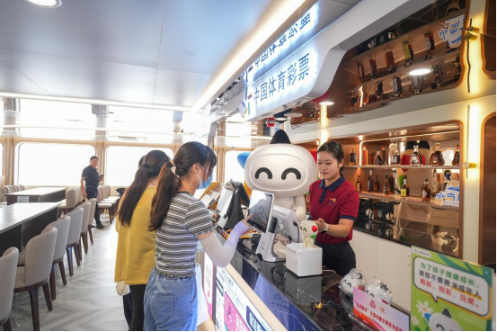 “本来以为只是普普通通坐趟船,没想到刚一上来,竟然看见了体彩店,特地买了一张彩票,拍好照片发到了朋友圈。”在游客潘女士以往的印象里,体彩店的“身影”总是出现在街头巷尾,在船上的这是第一次见,觉得非常新奇。“那条朋友圈下面,好多朋友评论说他们之前也看见过很不一样的体彩店,我才发现原来体彩现在已经这么‘时髦’了,感觉自己错过了很多精彩。”潘女士笑着说。