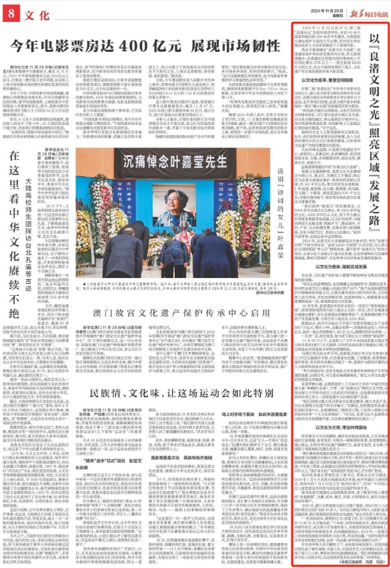 2024年,良渚文化大走廊建设迈出新步伐:举办“良渚与世界”中西文明对话,“良渚5000+艺创园”正式开园,径山茶文化公园样板段“梦山径”精彩亮相。通过发挥“良渚论坛”的综合效应,良渚文化大走廊正打通文化资源、生态资源转化为发展资源通道,推动文物保护、文化传承与经济社会发展深度融合。