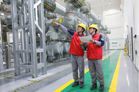 国网新源缙云电站党员青年突击队开展开关站500千伏GIS设备巡视。