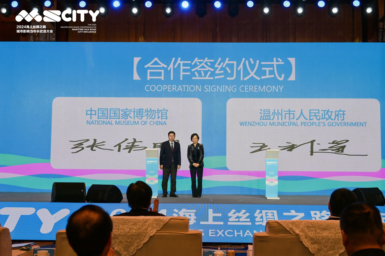 会上,中国国家博物馆与温州市人民政府合作签约,双方将谋划温州文物推广活动,支持温州戏曲名城的发展。温州市文旅局相关负责人介绍,温州这座千年历史文化名城,打造海上丝绸之路IP,凝聚历史、建筑、民宿、创意、人文等多元素,促进城市发展与文旅深度融合高质量发展,也将进一步推动温州与国际的交流合作,让城市发展迈入新阶段。