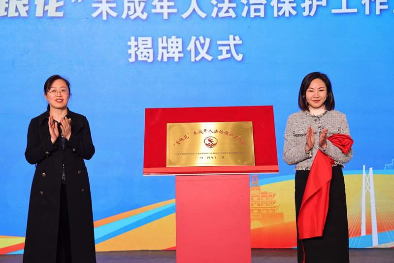 现场为“普法有‘画’说——农民画、法治漫画作品征集”获奖者颁发了荣誉证书;为李懿璇、高婕等6位青年普法宣传员颁发聘书;镇海区司法局与镇海区妇联相关负责人为“金银花”未成年人法治保护工作室揭牌。
