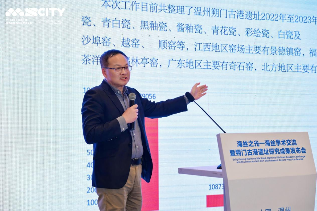 日前,2024海上丝绸之路城市影响力市长交流大会在浙江温州召开。会议期间,海丝之光——海丝学术交流暨朔门古港遗址研究成果发布会举行,复旦大学教授、博士生导师,中国古陶瓷学会常务副会长沈岳明围绕温州朔门古港遗址出土瓷器相关研究,进行了分享。
