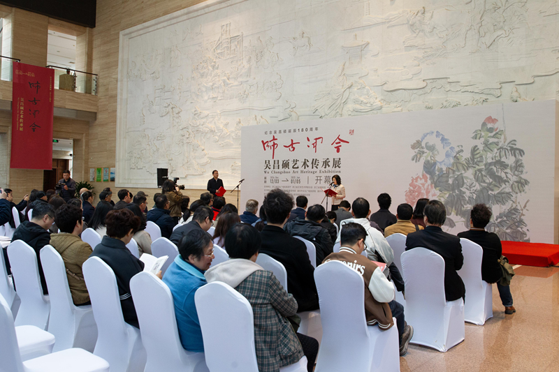 12月3日,由西泠印社、中共湖州市委宣传部、湖州市文化广电旅游局、湖州市文学艺术界联合会主办的“师古开今——吴昌硕艺术传承展”湖州巡展在湖州市博物馆开幕。