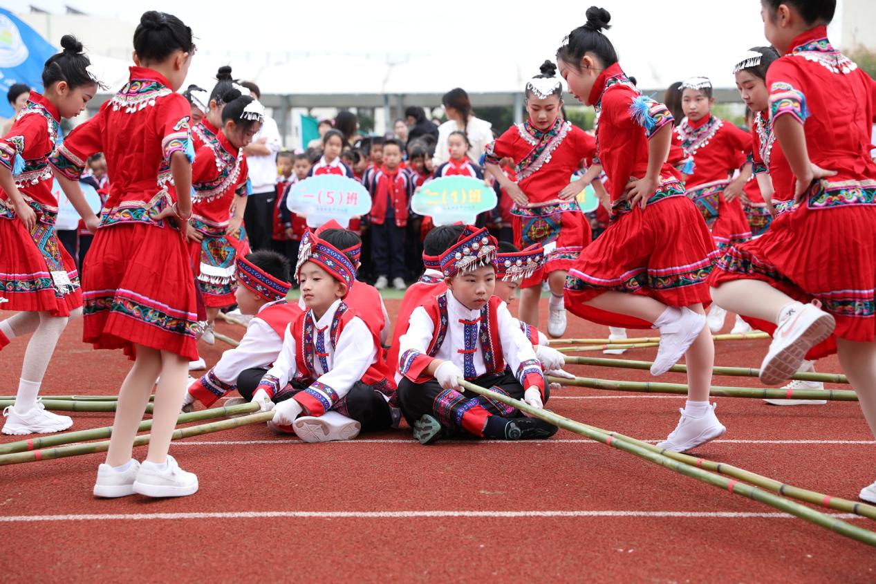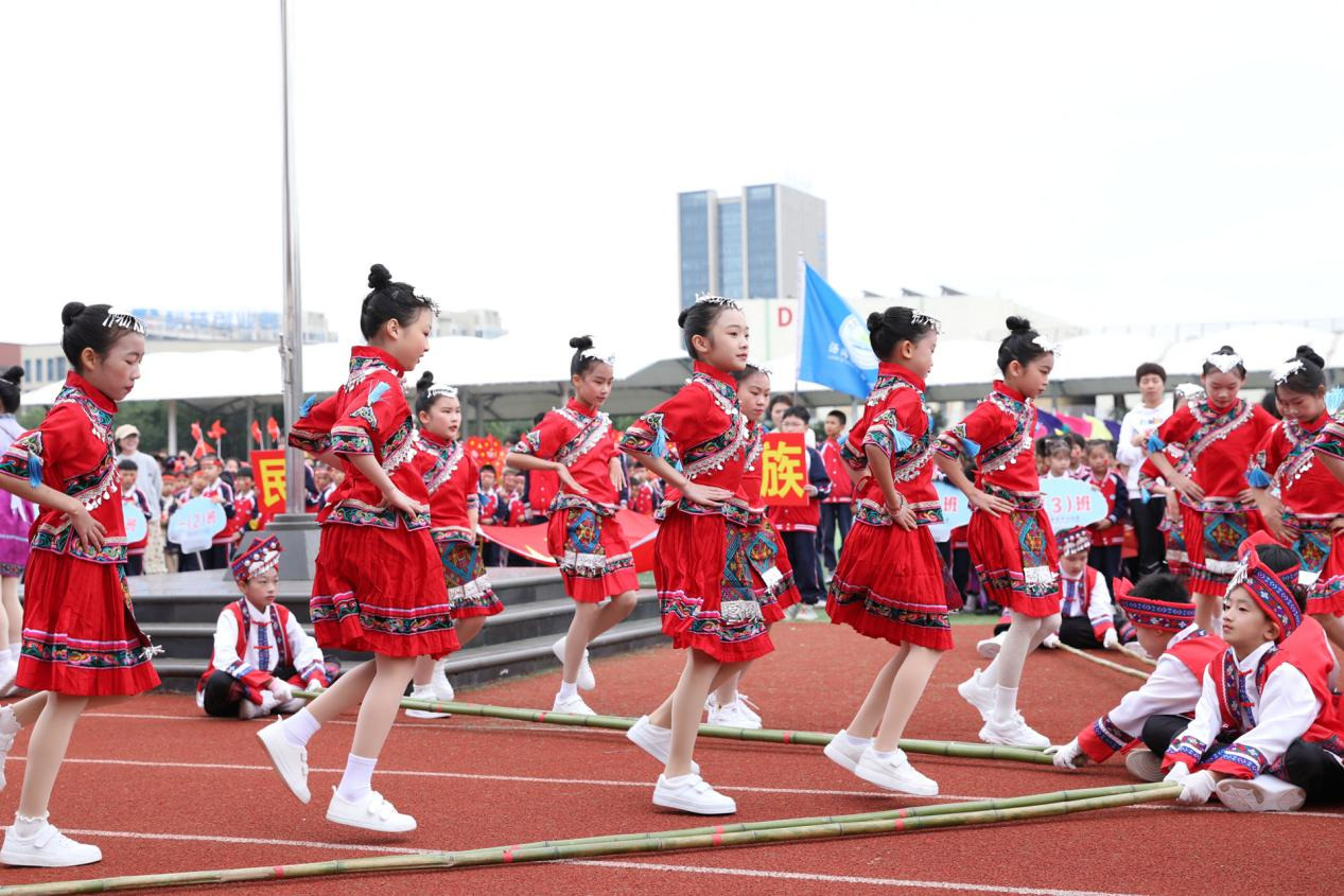近日,绍兴滨海新区沥海街道中心小学开展以“民族团结一家亲”为主题的民族游戏展演活动。哈尼族的竹竿舞、壮族的板鞋竞速、汉族的跳房子……形式多样且具民族特色的游戏吸引了众多师生参与其中,让学生们在轻松愉快的氛围中感受祖国各民族的多彩文化。
