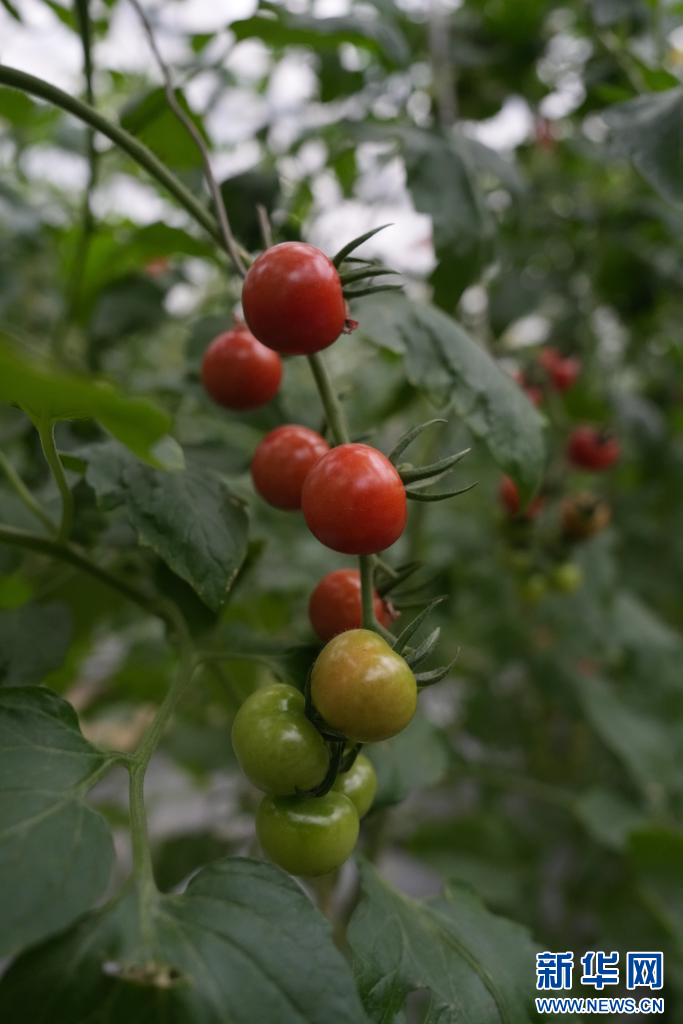湾底村智能化玻璃温室里的七彩番茄可供游客体验采摘。新华社记者周佳谊 摄