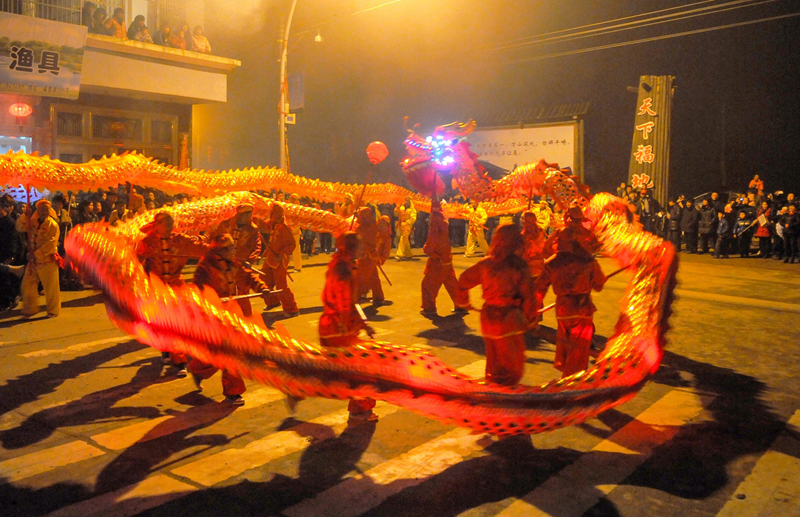 在“太公祭春祭”中,从除夕前一日的“起马祭”到正月初一的正式祭典,每一项环节都充满了浓厚的文化底蕴和地域特色。除夕前一日,主祭者在自家行完“起马祭”后,便将刘伯温的木主送入刘基庙中。随后,身着明式服饰的巡游队伍排成两列,浩浩荡荡地巡游于镇内,沿途乡亲放鞭炮迎接,热闹非凡。除夕辰时,主祭者及赞礼生、执事人员到庙后追远祠致祭太公上七祖,祈求先祖庇佑。大年初一,正式祭典开始,主祭人员依次行瘗毛血、盥洗、参神礼、降神礼、读祝、初献、亚献、三献等古礼,整个过程庄重而肃穆。晚间,还有龙舞、渔灯、花灯、车灯、戏曲等丰富多彩的文艺表演,为整个祭祖活动增添了浓厚的节日氛围。(程潇潇/文 王健/图)